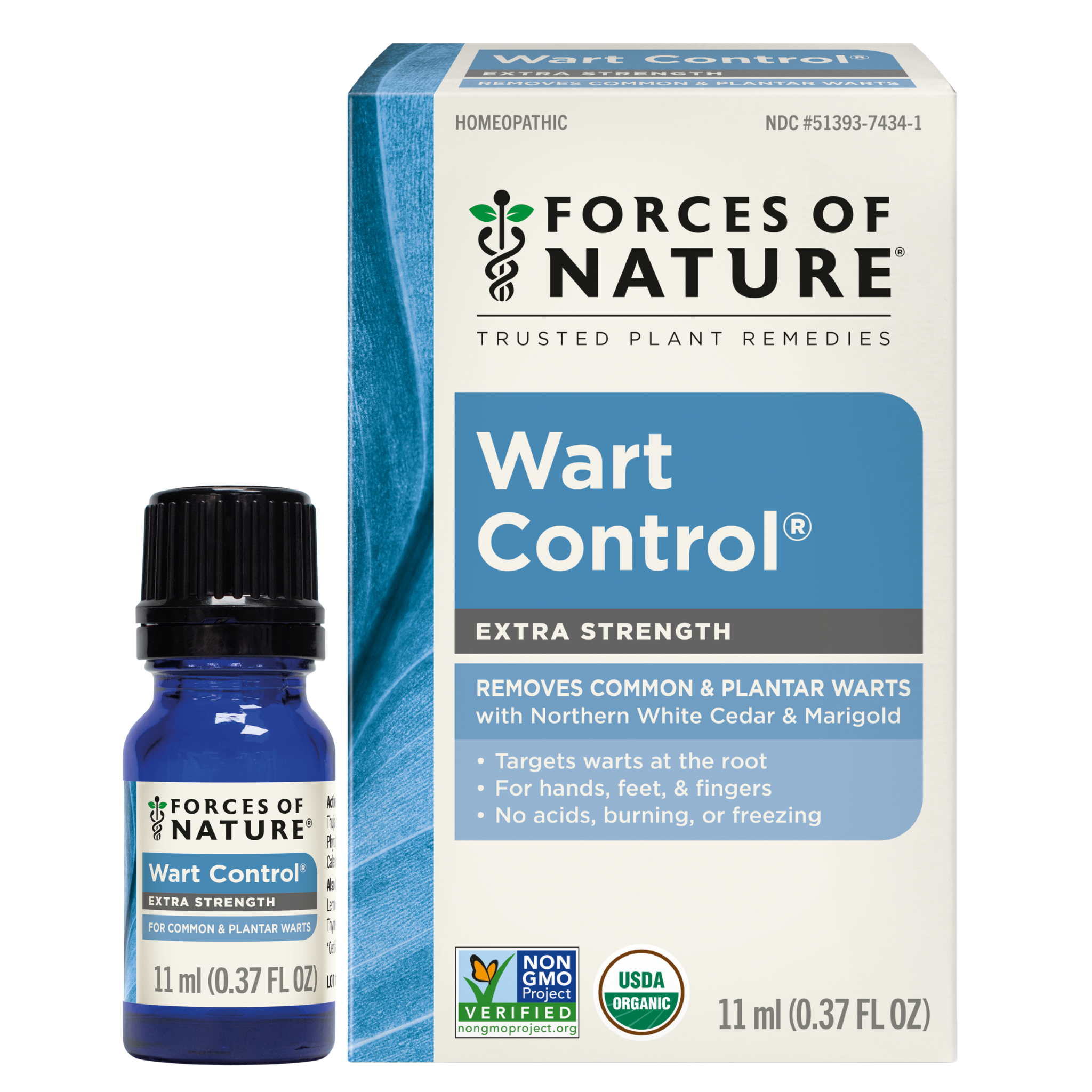 Forces of Nature Wart Control Extra Strength is a powerful. plant-based remedy for use in removing common and plantar warts with consistent use. Formulated with a unique blend of organic homeopathic medicines. including Thuja Occidentalis (Northern White Cedar) known for its naturally occurring antimicrobial phytochemicals that can fight warts and Calendula Officinalis (Marigold) long used to treat localized skin ailments. Wart Control works with your body to naturally fight warts at the root and prompt their elimination. The active ingredients are blended with pure essential oils. including Tea Tree and Thuja. to cleanse and nourish the impacted skin. Unlike conventional wart removal products that use synthetic ingredients or rely on freezing or acids. Wart Control is designed to be gentle on your skin for painless. natural wart treatment.